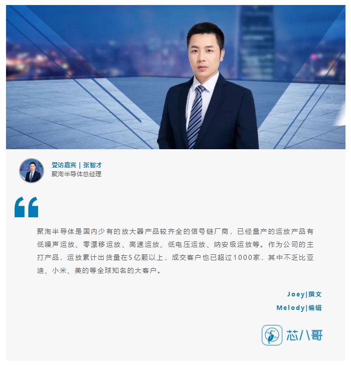 最近,芯八哥“走進(jìn)產(chǎn)業(yè)鏈”欄目記者采訪了國內(nèi)領(lǐng)先的運(yùn)算放大器廠商——聚洵半導(dǎo)體科技(上海)有限公司(簡稱“聚洵半導(dǎo)體”)的總經(jīng)理張智才。探討在國內(nèi)信號(hào)鏈模擬芯片國產(chǎn)替代加速發(fā)展的背景下,當(dāng)前聚洵半導(dǎo)體企業(yè)的發(fā)展情況以及對行業(yè)未來發(fā)展的展望。