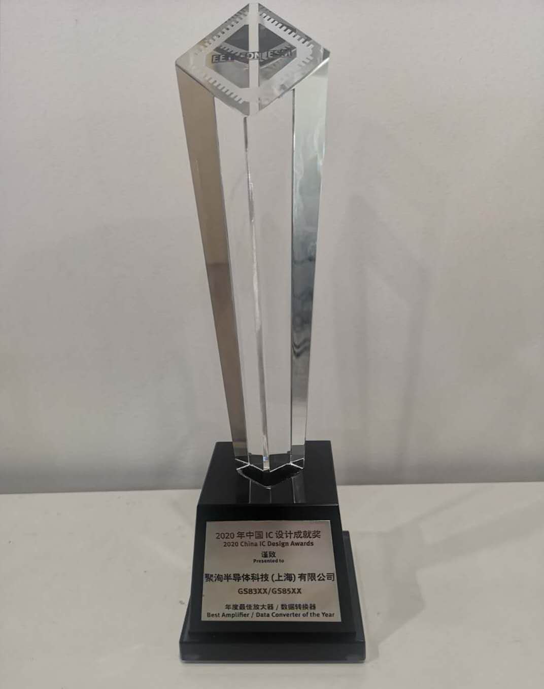 2020年6月28日,在由全球電子技術(shù)領(lǐng)域的領(lǐng)先媒體集團(tuán)Aspencore旗下《電子工程專輯》、《電子技術(shù)設(shè)計》和《國際電子商情》聯(lián)合舉辦的2020年度中國IC設(shè)計成就獎頒獎典禮上,聚洵GS83XX/GS85XX榮獲“2020年度中國IC設(shè)計成就獎之年度最佳放大器/數(shù)據(jù)轉(zhuǎn)換器”大獎。
